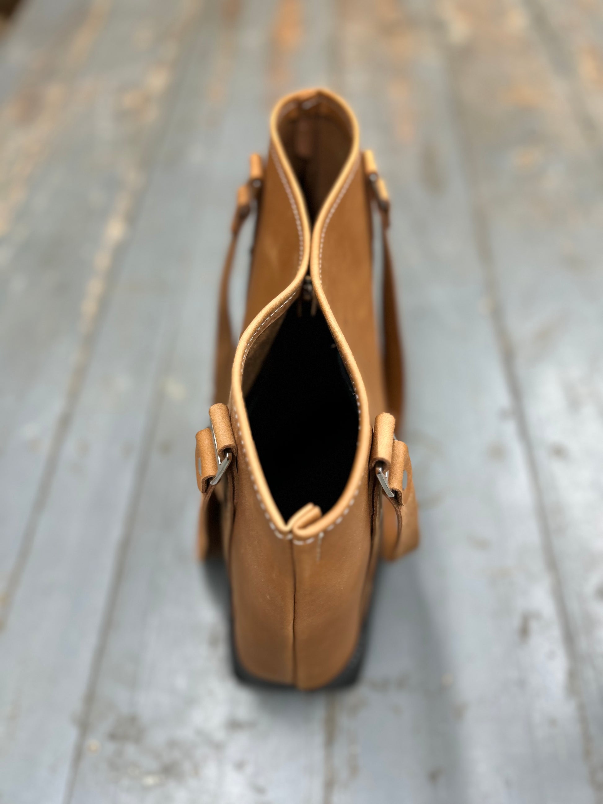 A handcrafted leather tote designed with intention, built with skill, and made to last a lifetime. Cut from premium full-grain leather, each piece carries its own natural markings and character, ensuring that no two bags are ever alike. The leather softens and deepens in color with use, developing a rich patina unique to your journey.